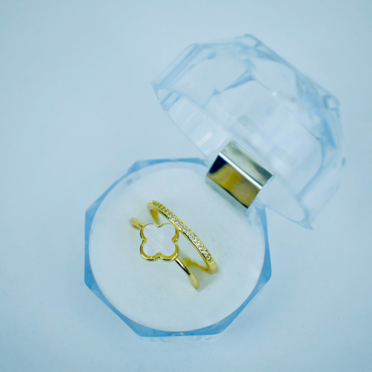 Elegant Clover Adjustable Ring β Dual Colors (Golden & Silver)