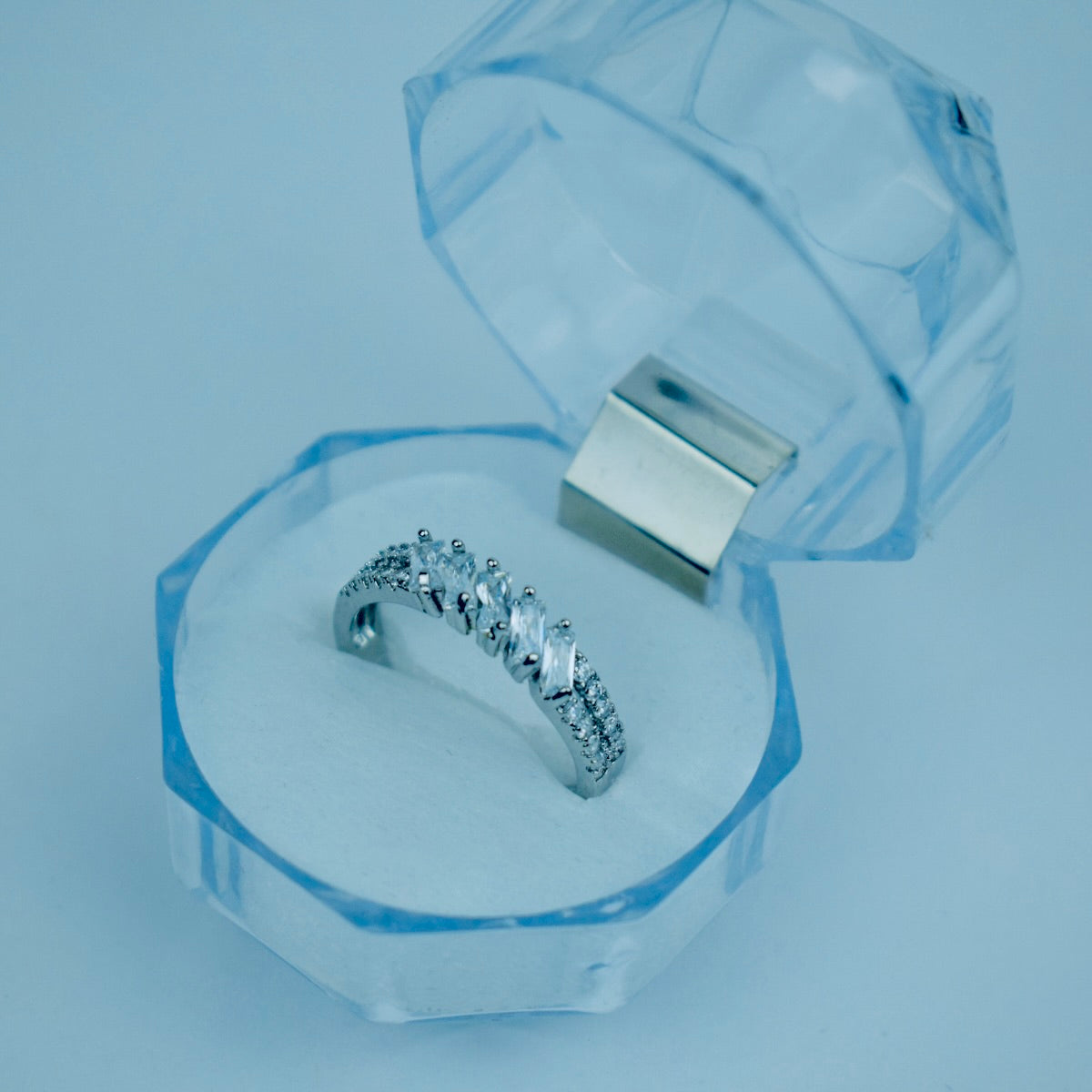 Silver: Sleek and modern with a minimal band-style ring for everyday elegance